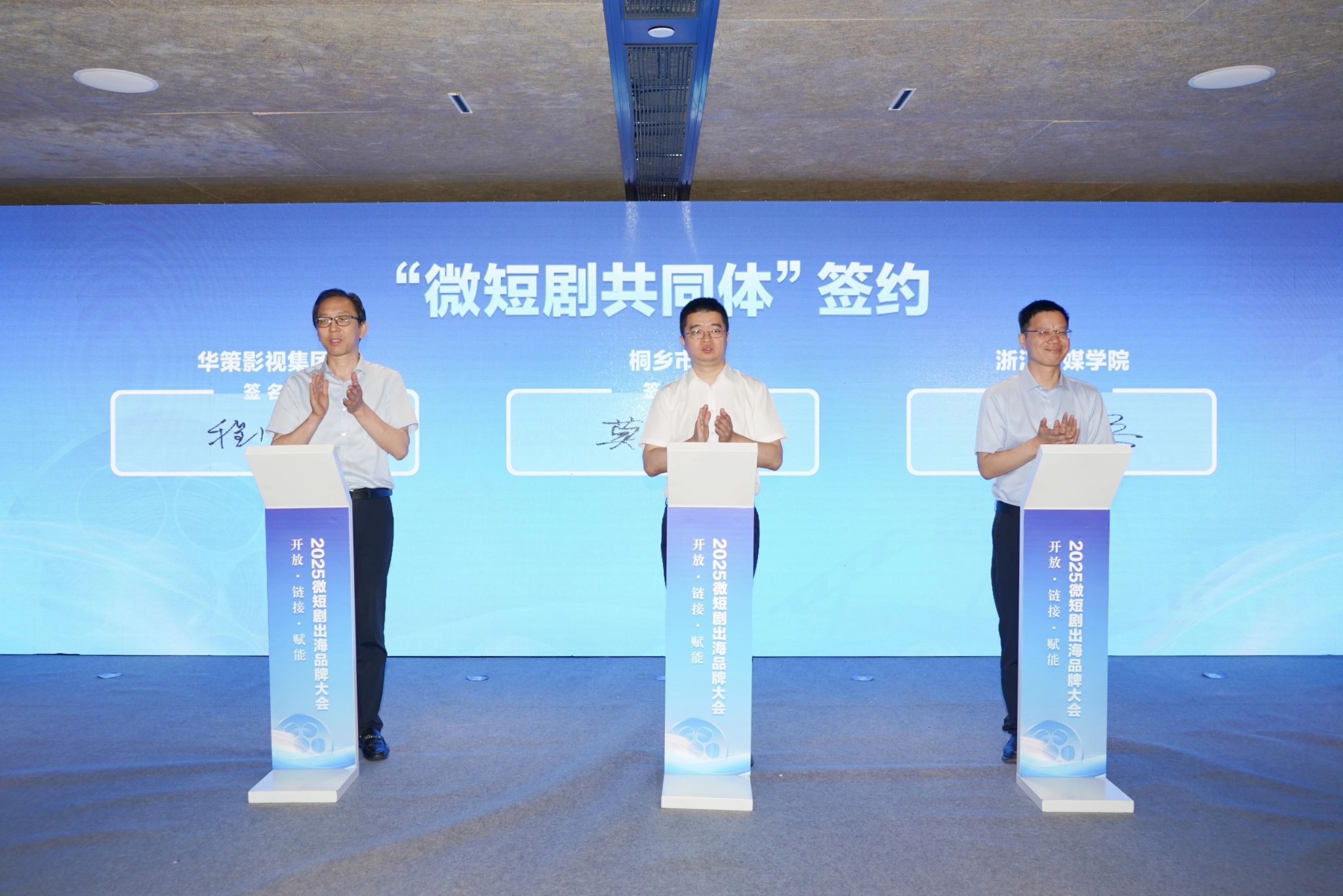 會上,浙江傳媒學(xué)院攜手華策影視集團和桐鄉(xiāng)市簽約成立“微短劇共同體”,聚焦人才培養(yǎng)、內(nèi)容原創(chuàng)、產(chǎn)業(yè)升級與出海實踐,依托省級產(chǎn)業(yè)學(xué)院,推動資源共享,進一步強化校地企聯(lián)系,為微短劇行業(yè)可持續(xù)發(fā)展賦能。