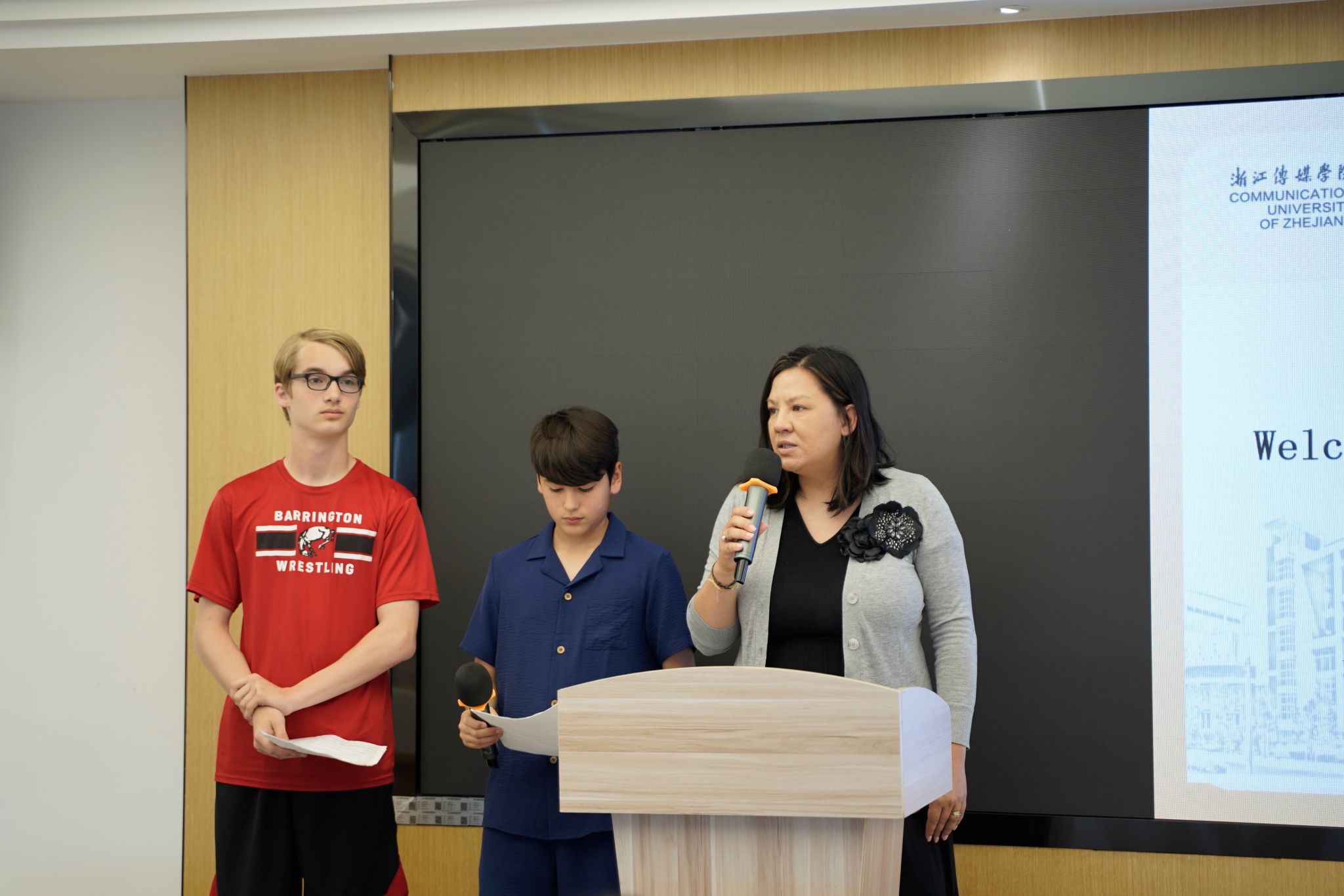 7月7日上午,浙江傳媒學院錢塘校區(qū)求真報告廳內(nèi)氣氛熱烈友好,為美國伊利諾伊州百靈頓車站中學師生及家長的歡迎儀式在此舉行。浙江傳媒學院電視與視聽藝術學院(紀錄片學院)院長盧煒教授致辭,他簡要介紹學校辦學特色與國際交流成果,真誠地歡迎美國的學生們未來能夠來到這里留學深造,親身感受中國傳媒教育的獨特魅力,在這片充滿活力與創(chuàng)新的土地上追逐自己的傳媒夢想。他還表示,杭州作為南宋古都,兼具深厚文化底蘊與現(xiàn)代創(chuàng)新活力,希望美國朋友借此感受中國傳統(tǒng)文化與現(xiàn)代科技融合之美。美方代表團團長、百靈頓車站中學校長Cindy Lynn Ruesch博士表達感謝并期待更多合作。美方學生流利的中文翻譯,成為中文沉浸式教學成效的生動注腳。歡迎儀式上,中美學生合唱《讓世界充滿愛》,以音樂傳遞和平友誼愿景,為活動拉開友好序幕。