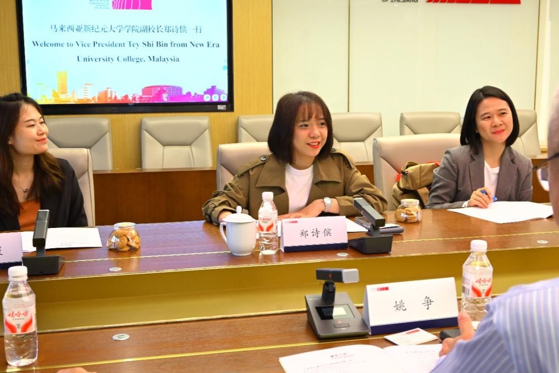 鄭詩儐詳細(xì)介紹了新紀(jì)元大學(xué)學(xué)院的發(fā)展歷程、學(xué)科建設(shè)及國際化辦學(xué)情況。她指出,浙江傳媒學(xué)院是中國傳媒教育的重要基地,聲譽(yù)卓著,成果豐碩。新紀(jì)元大學(xué)學(xué)院始終致力于推動跨文化教育交流,期待與浙傳在媒體傳播、數(shù)字藝術(shù)、文化創(chuàng)意等領(lǐng)域探索合作路徑,通過共建研究平臺、開展短期研學(xué)項(xiàng)目等方式,實(shí)現(xiàn)資源共享、優(yōu)勢互補(bǔ)。