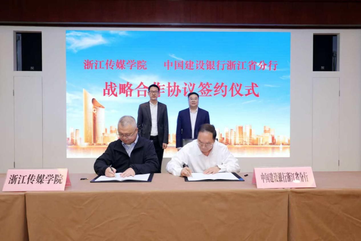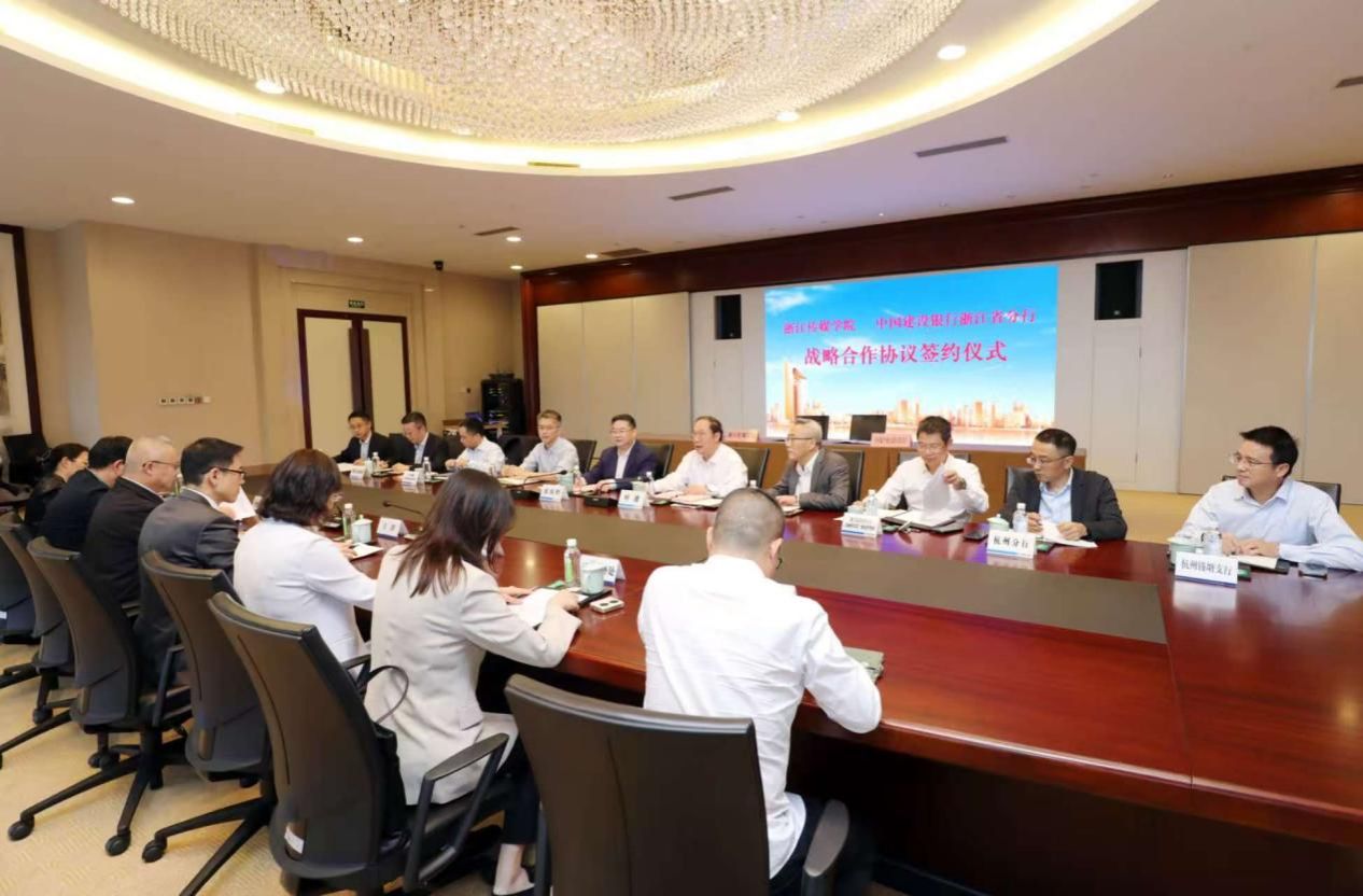 10月20日下午,我校與中國建設銀行浙江省分行舉行戰略合作協議簽約儀式,中國建設銀行浙江省分行行長張偉煜、副行長葉進,校長韋路,副校長姚爭、姜雯出席,學校辦公室、計劃財務處、社會合作處、信息技術中心等單位負責人參加活動。