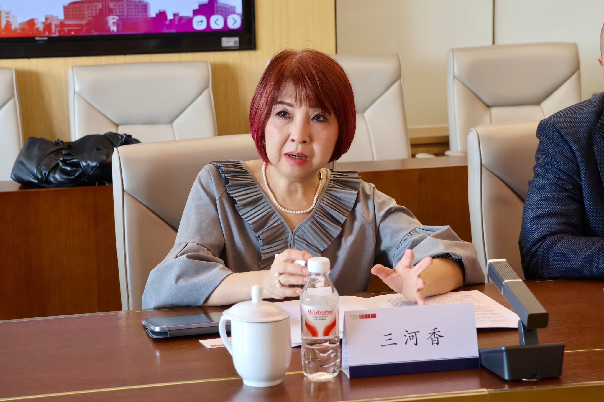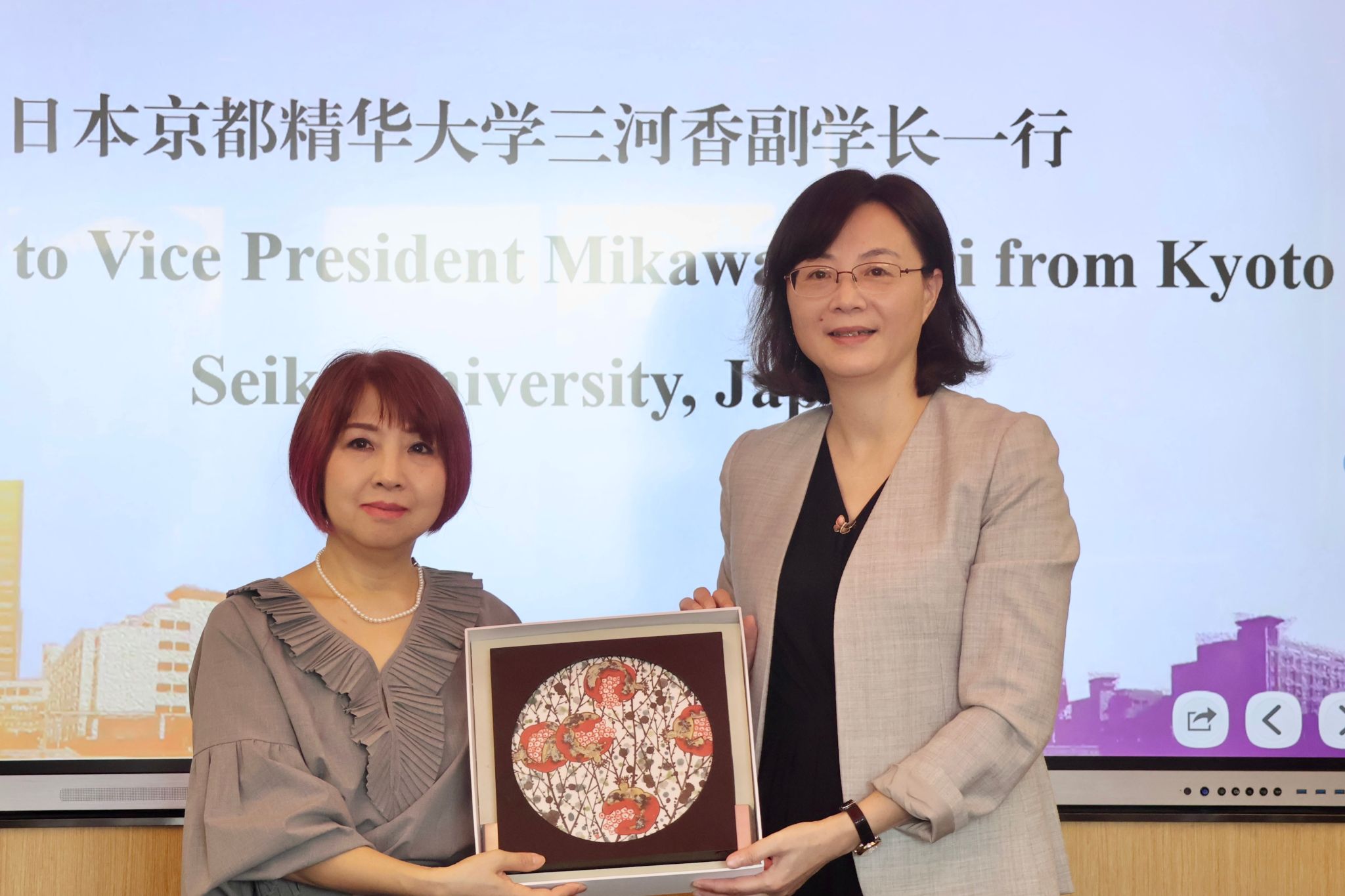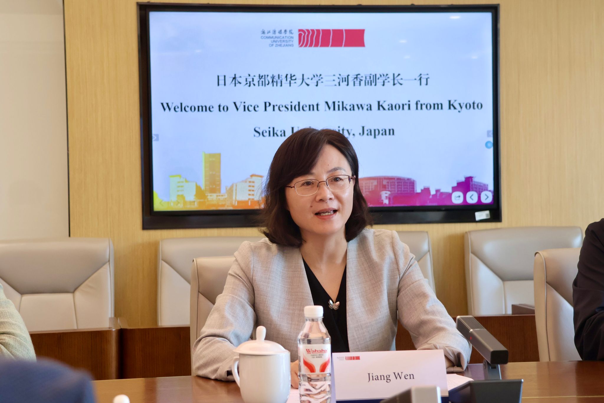 姜雯對(duì)三河香一行的到訪表示歡迎,并系統(tǒng)介紹了學(xué)校的辦學(xué)特色、學(xué)科優(yōu)勢(shì)和國(guó)際化發(fā)展戰(zhàn)略,表達(dá)了與日本京都精華大學(xué)展開深度、穩(wěn)定、長(zhǎng)期合作的期待,特別是在師生交流、科研合作和文化互鑒方面,創(chuàng)新合作范式,為兩校的國(guó)際化發(fā)展和人才培養(yǎng)注入新活力。
