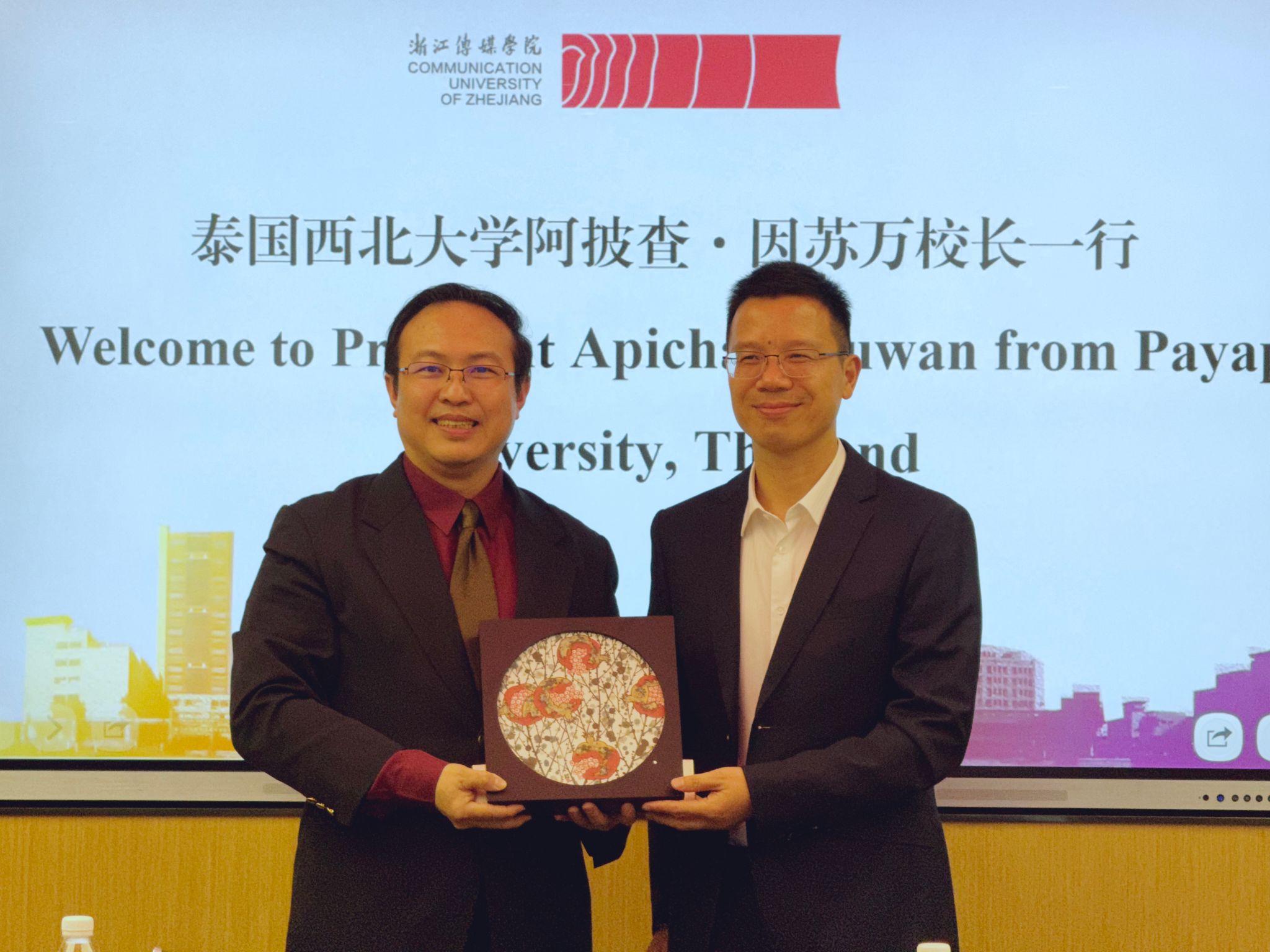會后,阿披查·因蘇萬一行參觀了我校4K電競綜合實驗室、校史館,進一步了解我校在傳媒領域教學與實踐的最新成果,并出席了第六屆國際大學生配音大賽暨鑒湖聲音藝術季開幕式活動。