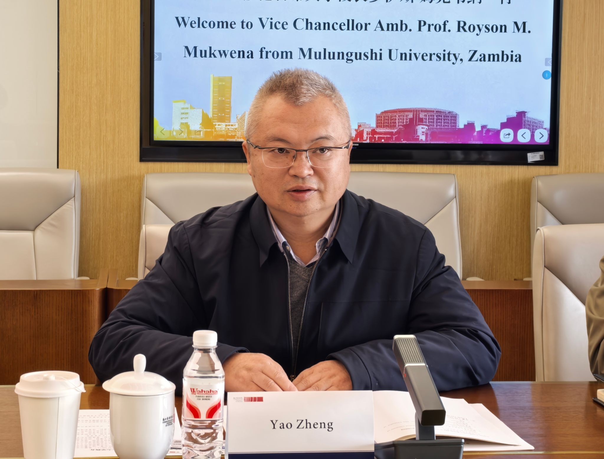 12月3日,贊比亞穆倫古希大學校長羅伊斯·姆克韋納一行來訪我校。校長韋路和副校長姚爭分別會見代表團一行,校國際交流合作處、媒體工程學院、國際教育學院等相關單位負責人參加了會談。