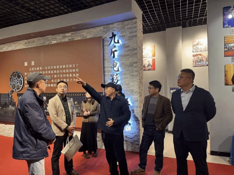 會后,在許村鎮綜合辦公室主任馮婉箐及新華村黨委書記蘇海剛陪同下,師生團隊實地參觀了具有地方文化特色的九斤電影珍藏館。觀摩影像《周恩來外交風云》《中美建交-尼克松訪華》紀錄片。通過影像觀摩,深切感受到當今美好生活的來之不易,認識到歷史影像收藏保護的重要意義。